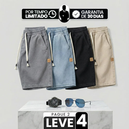 [Leve 4, Pague Só 2!] Bermuda Jeans Knox Masculina em Sarja de Algodão e Poliéster + BRINDES ( PREÇO DE ATACADO)
